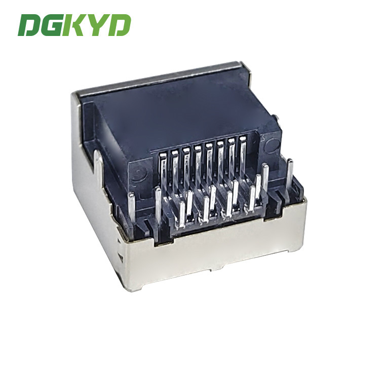 แจ็ค RJ45 แบบ SMT โปรไฟล์ต่ำพร้อมฉนวนป้องกันโลหะ ตัวเชื่อมต่อ RJ45 แบบ DIP 4.2 พร้อมฉนวนและไฟ DGKYDCB421188AB1W6DB1075