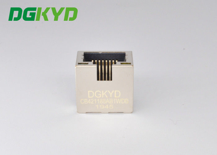 แจ็ค RJ45 แบบ SMT โปรไฟล์ต่ำพร้อมฉนวนป้องกันโลหะ ตัวเชื่อมต่อ RJ45 แบบ DIP 4.2 พร้อมฉนวนและไฟ DGKYDCB421188AB1W6DB1075
