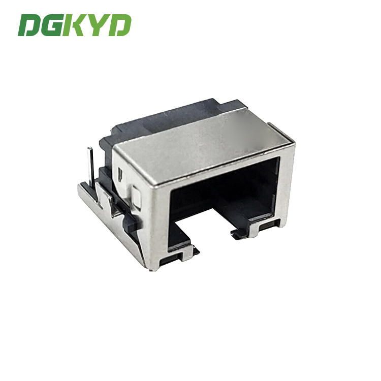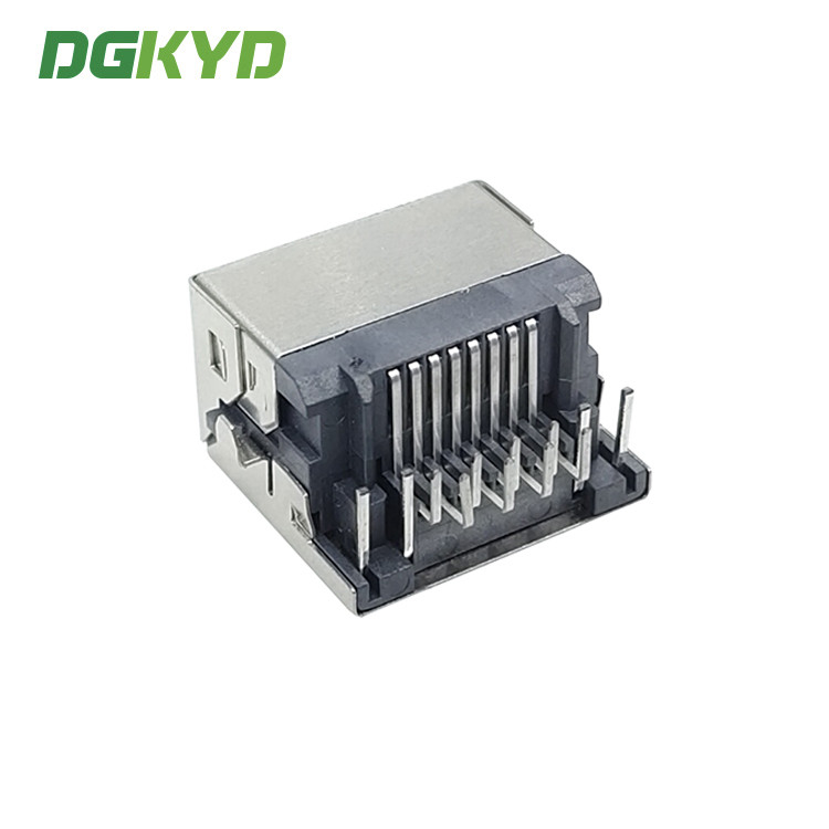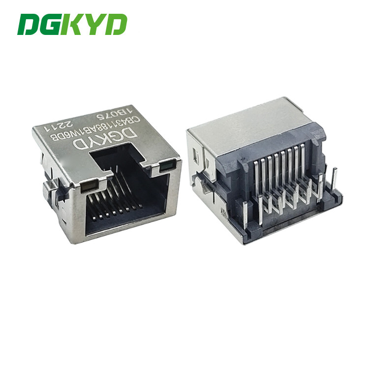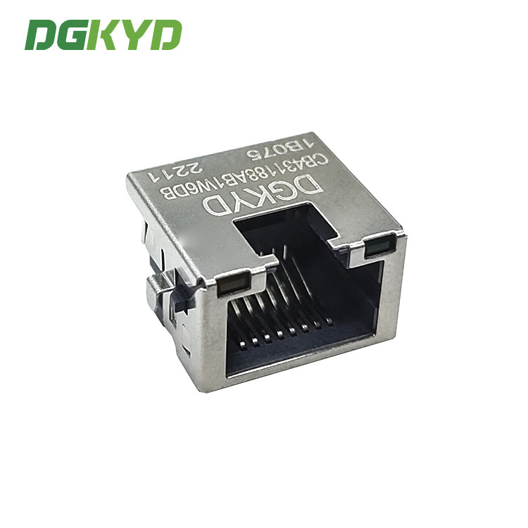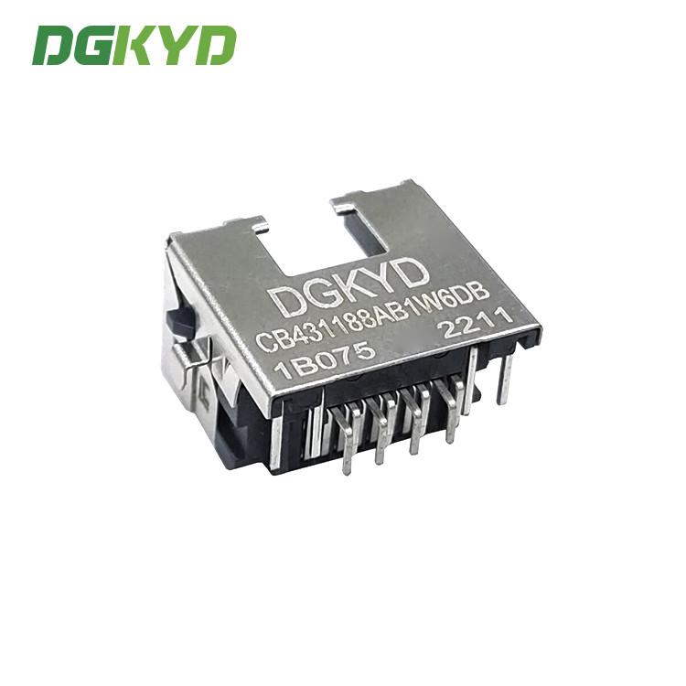 แจ็ค RJ45 แบบ SMT โปรไฟล์ต่ำพร้อมฉนวนป้องกันโลหะ ตัวเชื่อมต่อ RJ45 แบบ DIP 4.2 พร้อมฉนวนและไฟ DGKYDCB421188AB1W6DB1075