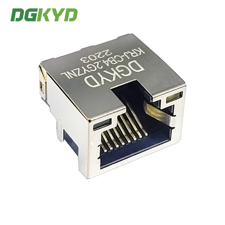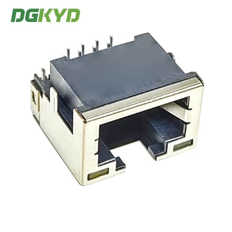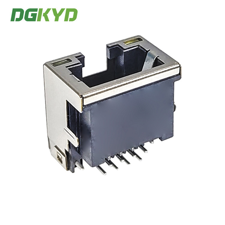แจ็ค RJ45 แบบ SMT โปรไฟล์ต่ำพร้อมฉนวนป้องกันโลหะ ตัวเชื่อมต่อ RJ45 แบบ DIP 4.2 พร้อมฉนวนและไฟ DGKYDCB421188AB1W6DB1075