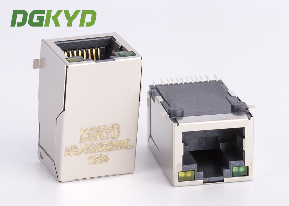 แจ็คแม่เหล็ก PCB พร้อมหม้อแปลงเมกะบิต SMD SINK RJ45 Ethernet Connector KRJ-CB060YGZENL
