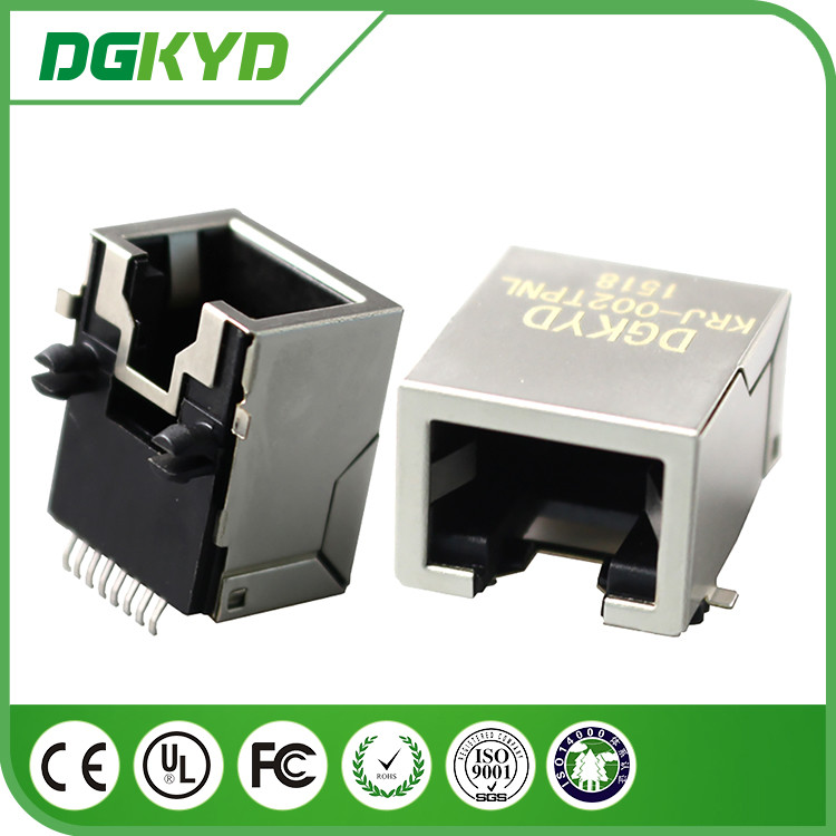 ขั้วต่อ PCB RJ45 SMD แบบแท็บลง 1x1 ไม่มีหม้อแปลง, ชุบทอง 6U KRJ-002TPNL